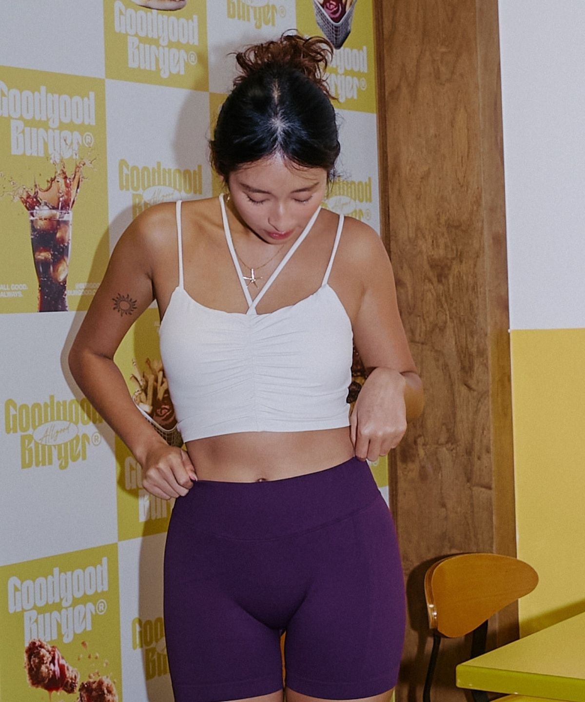 漂亮寶貝|雙細肩抓皺運動內衣-北歐白