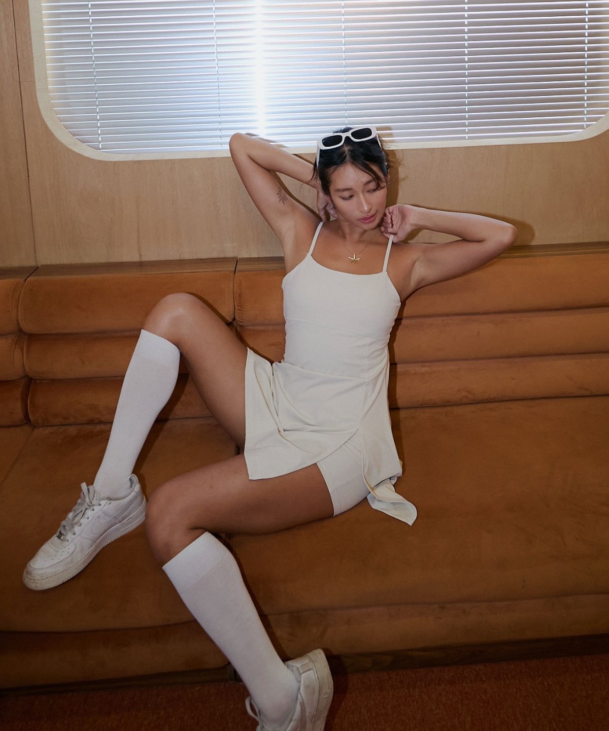 tenniscore|細肩高彈性網球連身裙(內有安全褲)-象牙
